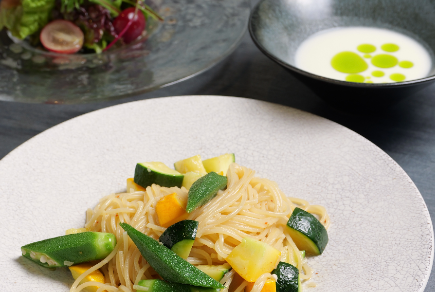 フレッシュトマトとバジルのスパゲッティ ●サラダ・スープ付き ※プラス300円でパンビュッフェ付き 1,500円→1,000円