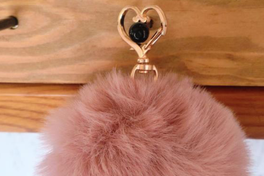 タッセル型のキーリングを作成いたします。くすみ系のピンクやグレー、ベージュのレザーでの作成なのでかわいい作品に仕上がります。お土産にファーのリングもお付けいたしますので、持ち物のワンポイントにいかがでしょうか?