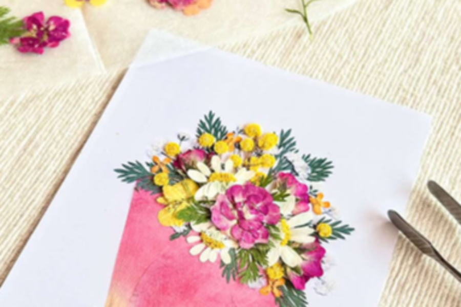 お好きな押し花を選んで、自分だけのオリジナルデザインの刺繍を お楽しみいただけます。没頭できる楽しい教室なので、ぜひご参加 してみてはいかがでしょうか?